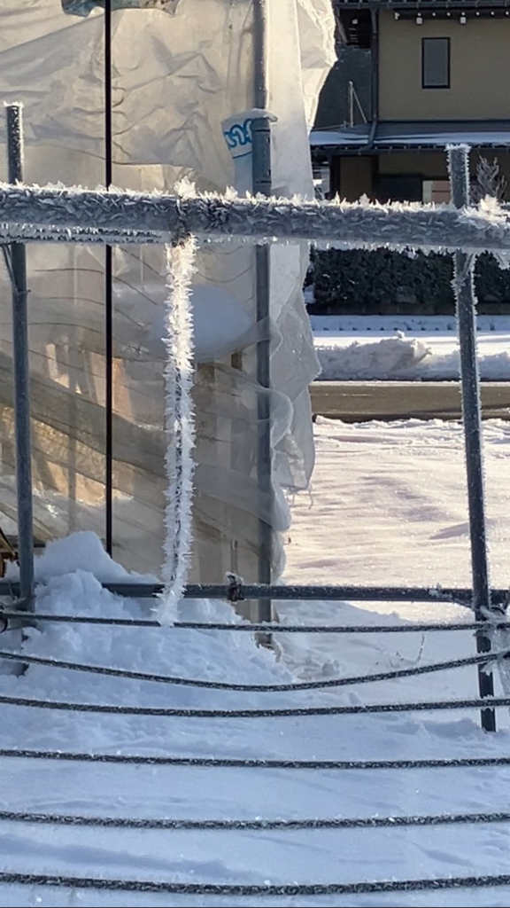 外を見れば、木も柵も真っ白な「樹氷」でデコレーション。